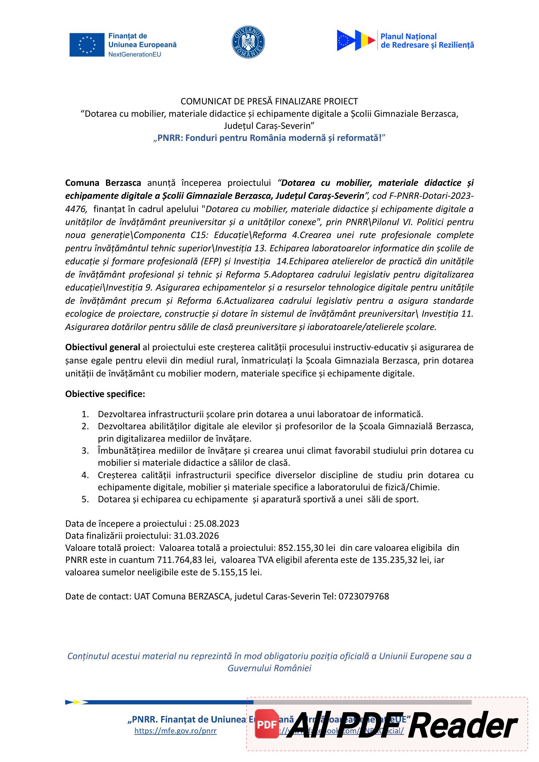 Cele mai importante aspecte ale activitatilor din Scoala Berzasaca, CARAS SEVERIN.